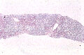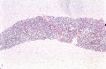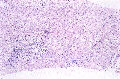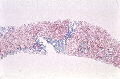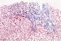 - 実質域;架橋形成性線維化(bridging hepatic fibrosis )、散在性にみる巣状壊死と好酸体、肝細胞の風船様膨化と明調化、肝細胞の大小不同、大滴性脂肪沈着を部分的に軽度にみる、核内空胞、ロゼット形成(偽腺管構造)、実質内に細線維の伸長、限界板の削り取り壊死、銅の沈着はなし(Victria blueおよびロダニン?)