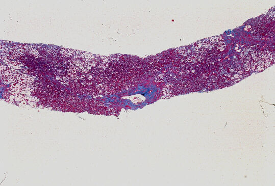 - 門脈域;中等度までの線維性拡大、中等度までの単核球主体の炎症性細胞浸潤、小葉間胆管の障害像、細胆管増生、胆汁栓